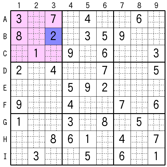 % Step0: 1-Koku-domei(1国同盟) ; [B3] = [2] : B8 = [1,2,3,4,5,6,7,9] -> [1,3,4,5,6,7,9]